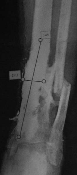 Мужчина, 50 лет. Травма в результате ДТП в сентябре 2012 года. Сочетанная травма. ЗЧМТ. Ушиб головного мозга. З/переломы 5-8 ребер справа, пневмогемоторакс. З/двойной перелом обеих костей правой голени Варианты лечения: 1) Секвестрнекрэктомия н/3 б/берцовой кости, КДО аппаратом Илизарова, проточно-промывное дренирование, а затем транспорт фрагмента б/берцовой кости дистально (без остеотомии, за счет ложного сустава в/3). 2) Секвестрнекрэктомия н/3 б/берцовой кости (правда в каком объеме??), БИОС штифтом с антибактериальным покрытием). < | >