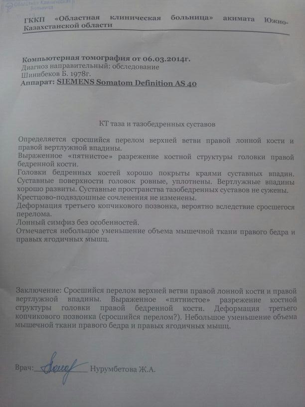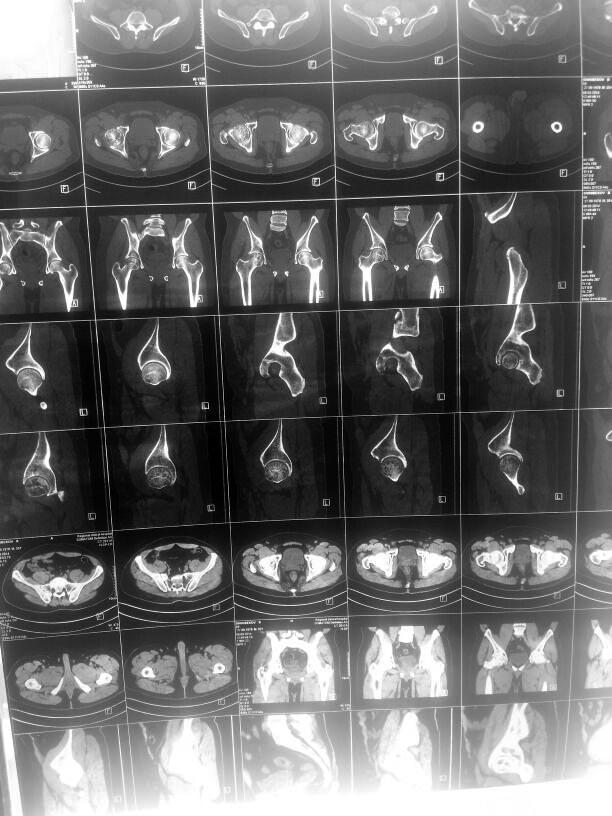 Доророгие коллеги помогите пожалуйста. Больной после перелома костей таза и вертлужной впадины. Прошло 4,5 месяца. Постельный режим в течение 2,5 месяцев. На первичном КТ был перелом лонной кости справа и дна вертлужной впадины без смещения, перелома головки бедренной кости не было. В данный момент беспокоят боли в правом т.бедренном суставе по поводу чего и было сделано КТ. Нас беспокоят изменения в головке бедренной кости. Мнения разделились. Мое мнение, что это проявления остеопороза следствие отсутствия нагрузки и больному следует продолжать нагрузки. У других коллег мнение что это явления асептического некроза головки бедра, и они рекомендуют постельный режим до 6 месяцев. Заранее спасибо за Ваше мнение.
