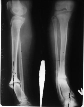 Коллеги, обратилась пациентка 12 лет, со слов матери 5 лет назад заболела острым гематогенным остеомиелитом, 4 раза оперирована в обл. детской больнице, после образовался ложный сустав, в центре произведена костная аутопластика, нагноение, после отторжения аутокости рана зажила и рецидив псевдоартроза 2 года назад(все это со слов матери). Клинически тугой ложный сустав н/з голени, деформация,укорочение 2см, девочка ходит самостоятельно, прихрамывает. Пока определенного мнения нет, повторно открывать не хочется, какие будут мнения по поводу БИОС- после остеотомии м/б кости и аппаратной коррекции деформации или сначала профилактически спейсер с антибиотиком ? и продолжать ЧКДО? Прилагается Р-граммы, обещают принести и предыдущих Р-грамм.( пациентка из другой обл.) С уважением Абдурашид.