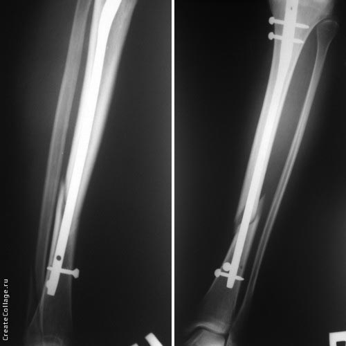 1. Гвоздь ОЧЕНЬ коротковат. Нет репозиции большеберецовой, гвоздь в дистальном отломке пошел по задней стенке.
