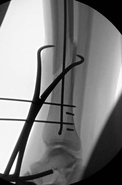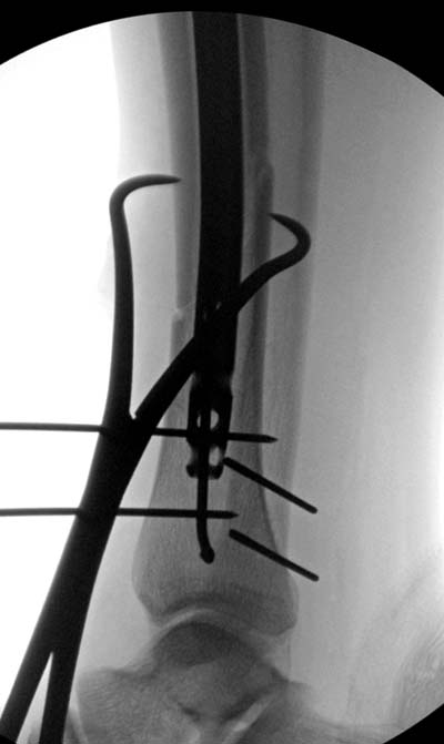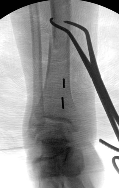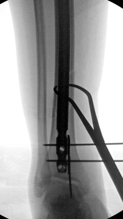 Кроме этого, имеет значение предварительная репозиция и риминг в центре канала. Интактная малоберцовая иногда затрудняет репозицию, но существуют разные приемы, нп. при застарелом можно применить дистракторы: стержневой или кольца Илизарова, а при свежих - перкутанно Weber clamp.