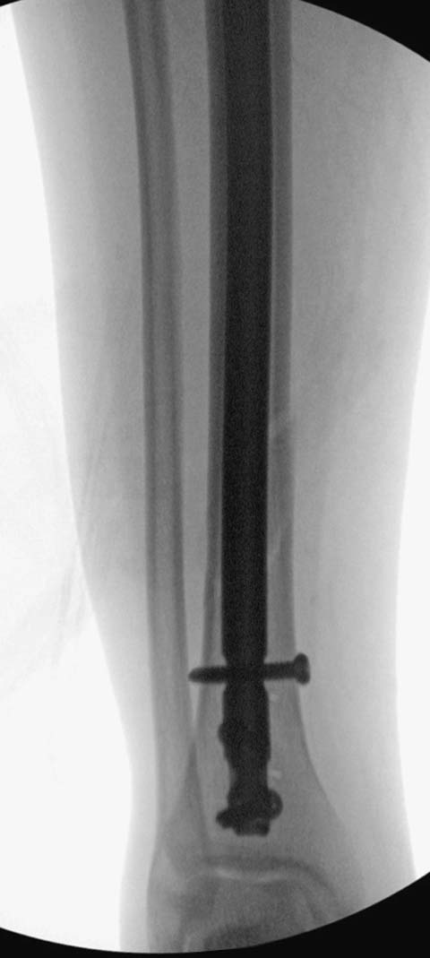 Хотя, по существу, гвоздь действительно короткий, и не смотря на это, заблокирован дистально только одним винтом - не стабильно