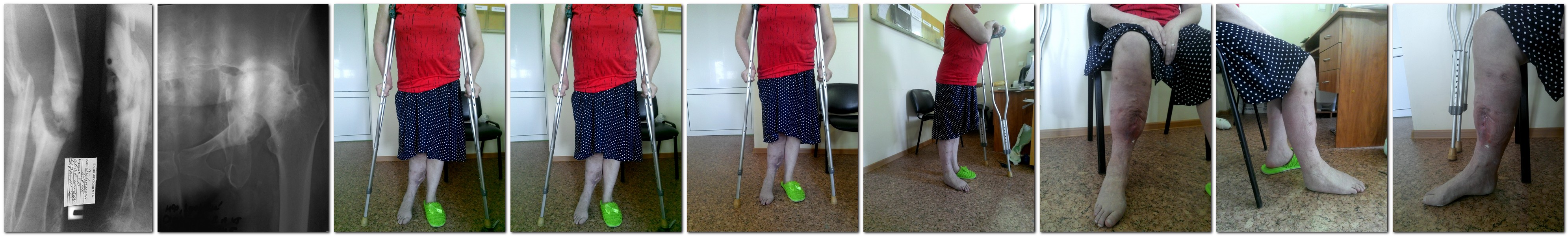 Уважаемые коллеги, хотелось бы узнать ваше мнение, как помочь пациентке. Больная 1967 г.р, травма в результате падения с высоты. Перелом правой голени и костей таза с разрушением вертлужной впадины слева. При обследовании в травм отделении был выявлен инфильтративный туберкулез, в связи с чем лечение травм осуществлялось в туберкулезном стационаре. Центральный вывих бедра остался невправленным, выполнялся остеосинтез большеберцовой кости пластиной, со слов больной, пластина удалена через 3 месяца в связи с нагноением, разрешена нагрузка в гипсовой повязке. После начала нагрузки произошла деформация голени.К нам в стационар пациентка обратилась в феврале 2013, с клиникой ложного сустава большеберцовой кости, вальгуса и рекурвации на уровне перелома,ремиссии остеомиелита. Выполнен ЧКДО, остеотомия малоберцовой кости.В августе 2013 повторное обращение, обострение остеомиелита, паратравматическая экзема, КДА демонтирован. Сейчас обратилась повторно. Патологическая подвижность, ходит с костылями,имеется один свищ на уровне перелома со скудным серозно-гнойным отделяемым. Поливалентная аллергия дополняет эту прекрасную картинку. Что посоветуете? Еще раз пробовать аппарат? Фото рентгенограмм и конечности в приложенииСпасибо.