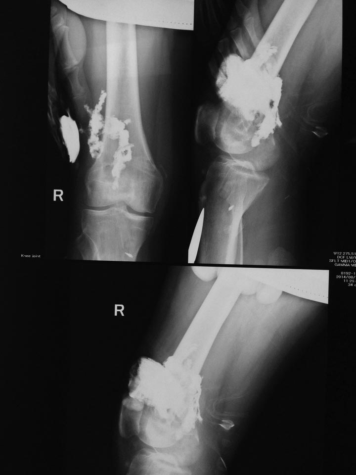 Санационную артроскопию не сделали, из -за боязни распространить инфекцию в передний отдел сустава, хотя в заднем отделе она все равно была, а также боязни окончательно потерять сустав.