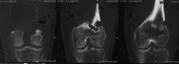 Была фиксация в жестком туторе 3 нед., далее поэтапная разработка в шарнирном ортезе стандартной схеме. Через 3 месяца после операции был курс инъекций гиалгана N5. Пациент восстановился полностью, через 6 месяцев приступил к тренировкам, все было нормально, мышцы восстановлены.