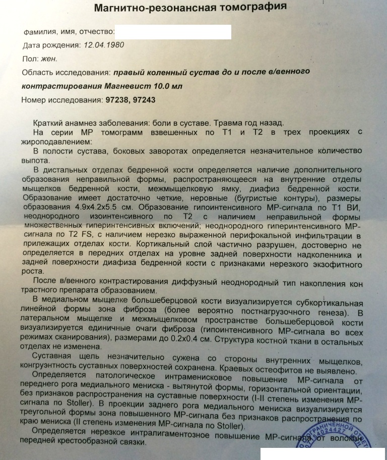 Re: Опухоль дистального метаэпифиза бедренной кости