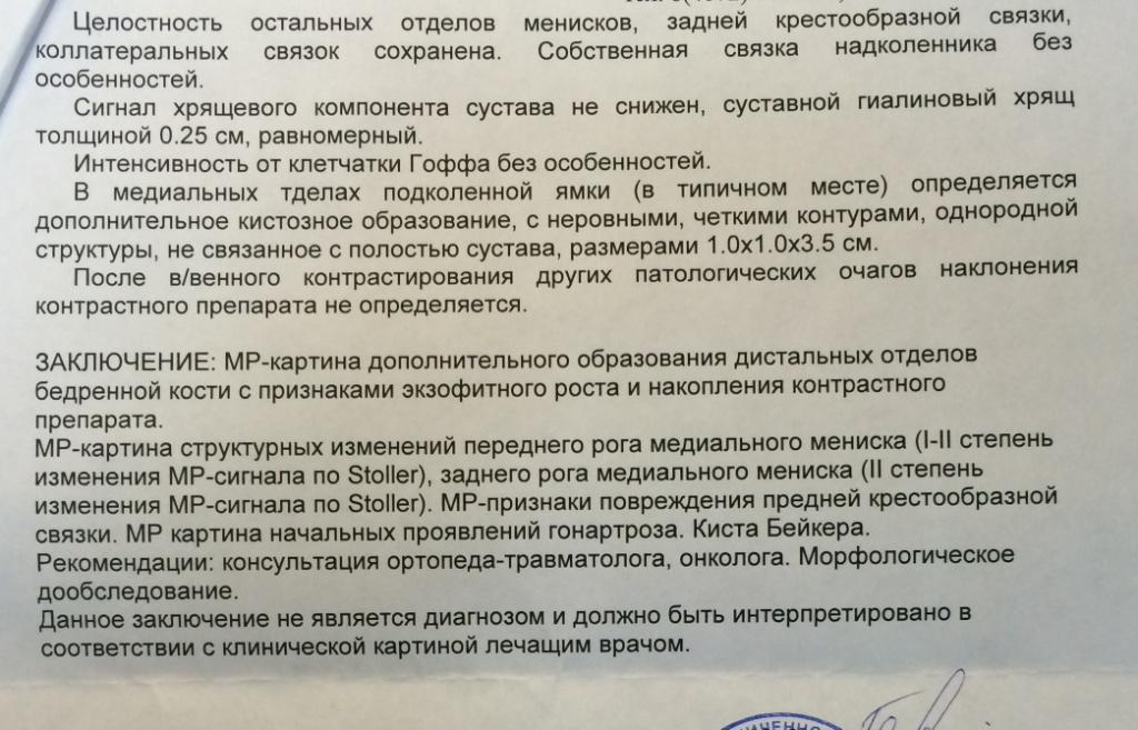 Re: Опухоль дистального метаэпифиза бедренной кости