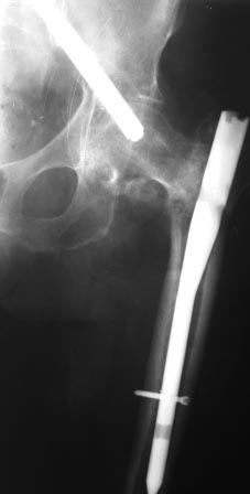 пациента по поводу вертельного перелома бедра оперирована 7 недель назад, в быту ходила с нагрузкой. около 2-х дней назад упала. На снимках вот такая картина. Сам ранее только читал, сейчас встретился воочию.
