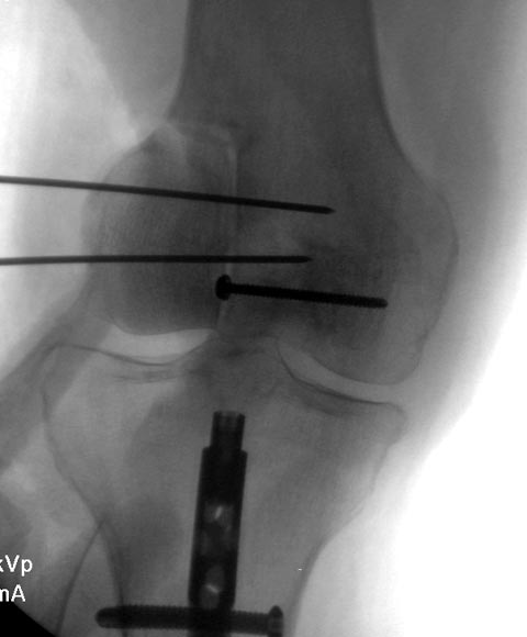 Здесь представлен посттравматический дефект латерального мыщелка и лечение аллографтом.