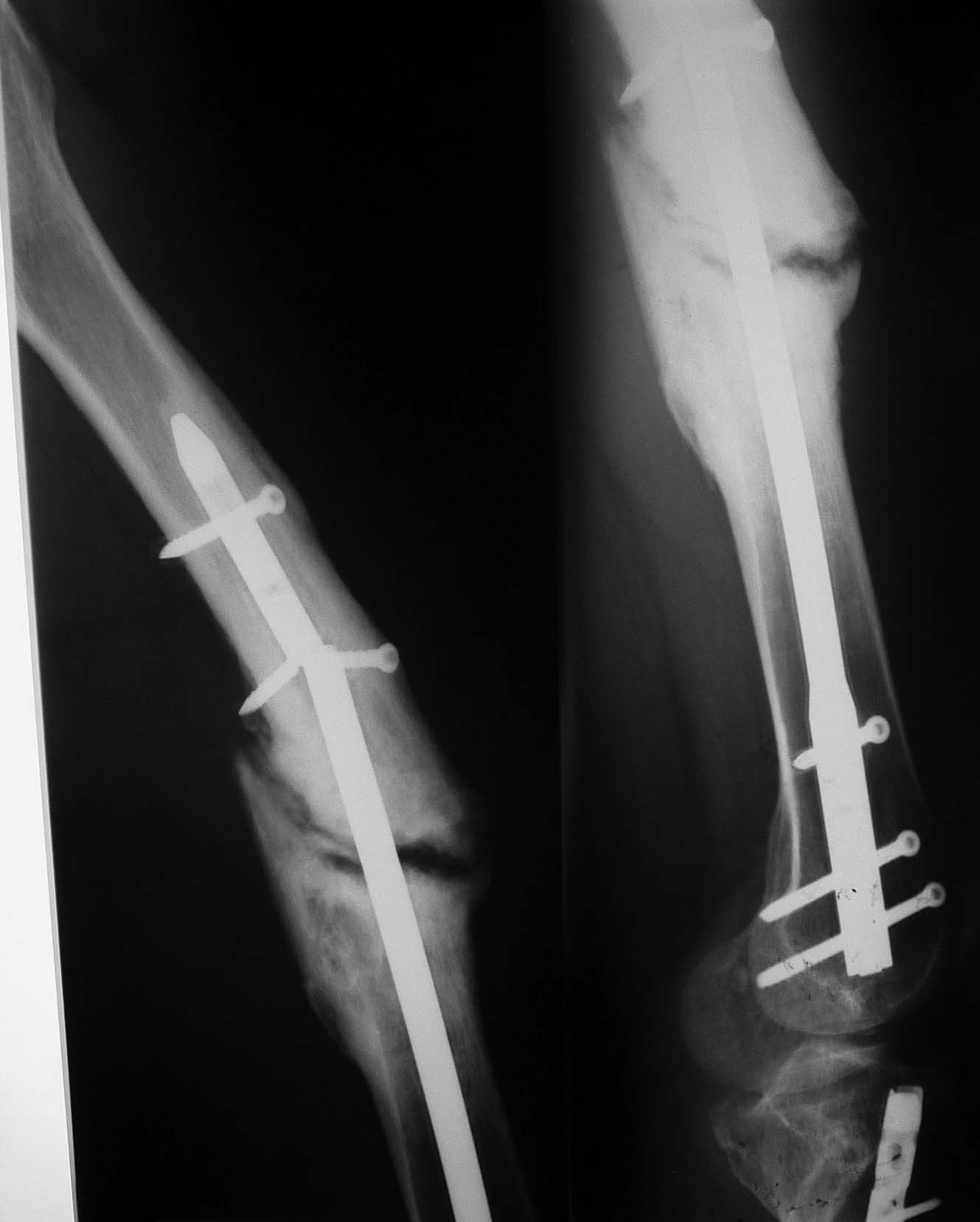 В подобном случае на голени воспользовались предварительно заточенным тонким голенным гвоздем, используя его, как шило.