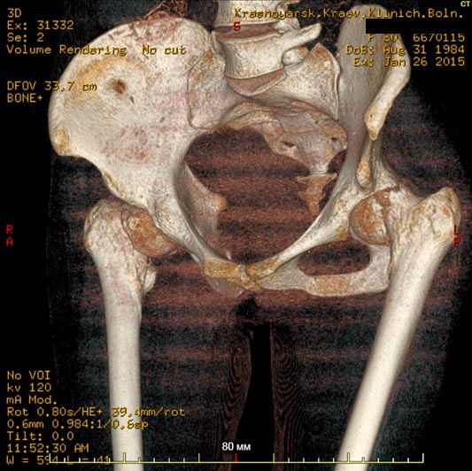 Не очень понятно насчет патологического характера перелома шеек бедра: на КТ есть локальное разрушение кости?