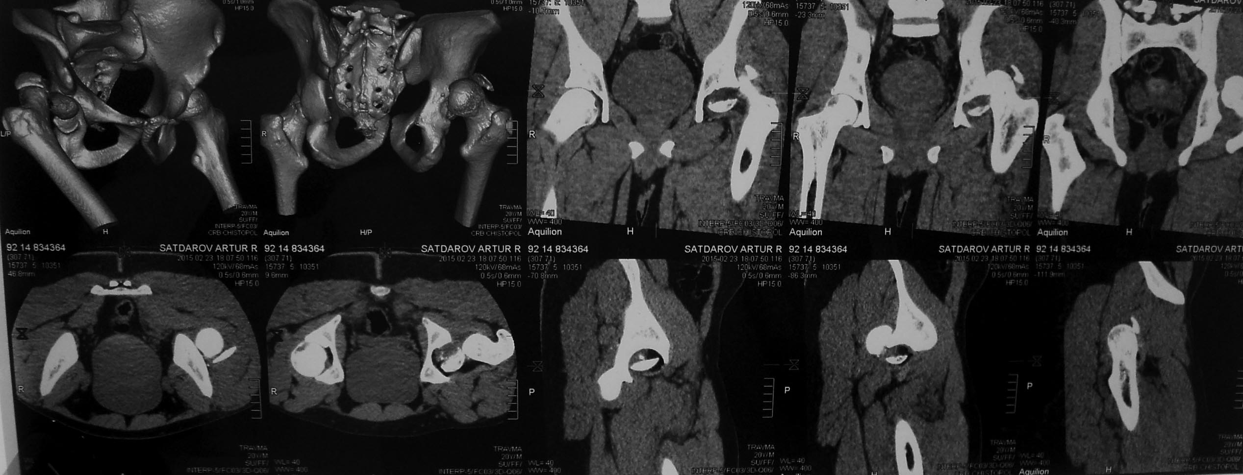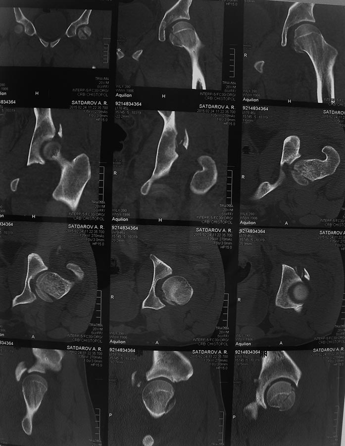 из ГАУЗ РКБ МЗ РТ Уважаемые коллеги добрый вечер! Хотелось бы узнать ваше мнение о возможных ранних сроках наступления асептического некроза или коксартроза при данном виде оперативного лечения, может кто-то уже оперировал данную патологию и есть наблюдения. Далее перевод к нам в Травмоцентр и 03.03.2015. через 8 дней операция, выполнен остеосинтез головки 3-мя самокомпрессирующими винтами Autofix под разными углами с погружением в субхондральный слой. Доступ Kocher-Langenbeck с флип-остеотомией большого вертела и задним хирургическим вывихом головки бедра. В полости сустава два свободно-лежачих фрагмента хряща головки, которые были удалены. На снимках виден дефект хряща головки после репозиции. Небольшой фрагмент заднего края фиксирован двумя спонгиозными винтами. Далее шов раны с дренированием. На 2 сутки пациент поворачивался на здоровый бок с валиком между ног, на 4 сутки сидел в кровати и на 6 сутки ходил с помощью костылей. Вопрос о первичном эндопротезировании у нас не стоял, и при разговоре пациент морально не был готов к такому повороту событий. С уважением, Гамиль Гарифуллов Казань, ГАУЗ РКБ МЗ РТ Травматологический центр отделение травматологии №1