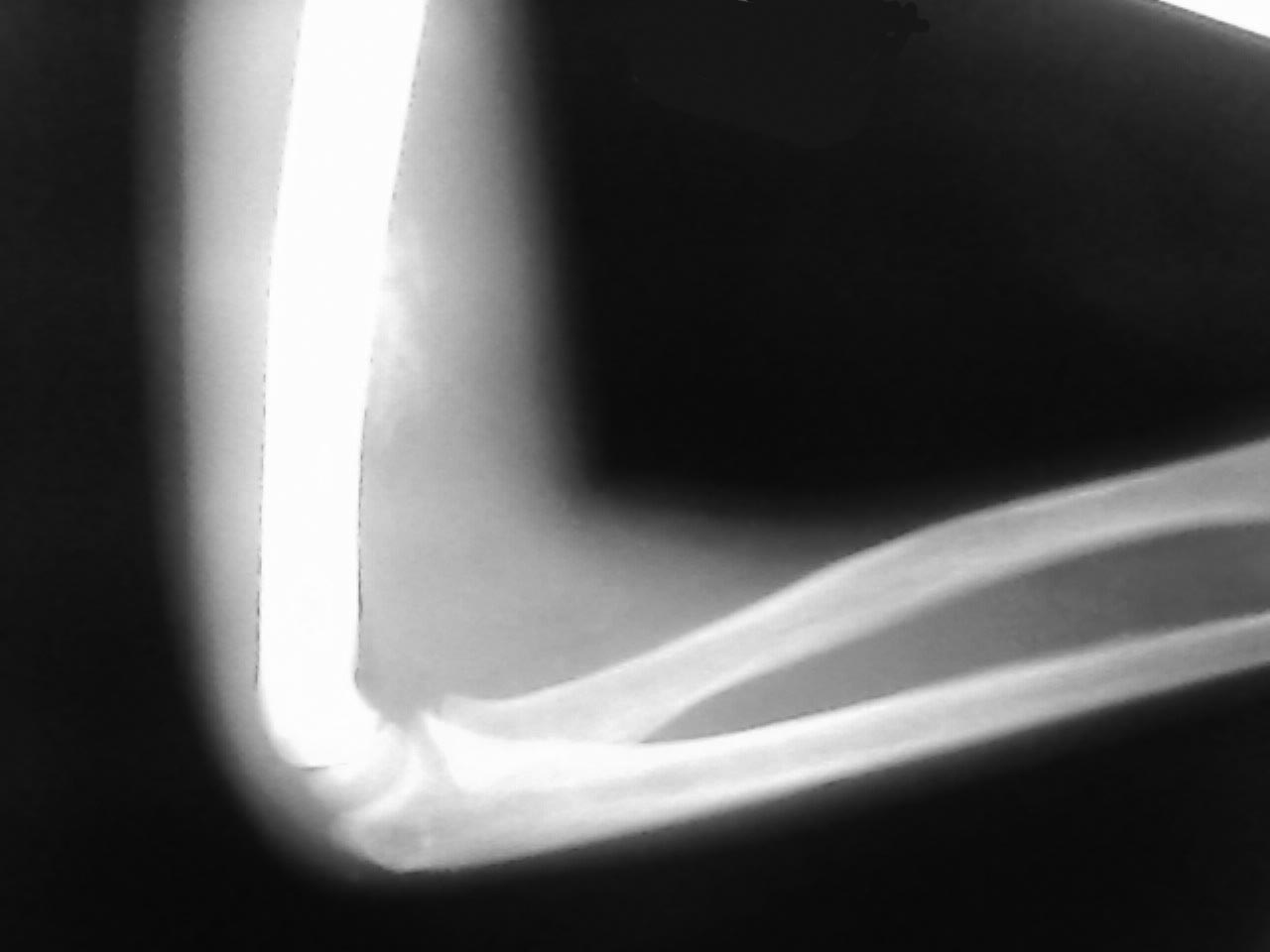 Предлагаю начать со снимка предплечья с захватом Л/з сустава, и локтевого в прямой. Далее по результатам.