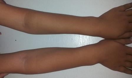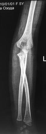 Обратилась девочка 2010г.р., 8 месяцев назад в результате падения на руку получила травму, гипсовая повязка , которую сняли через неделя и дальше не лечилась, со слов матери постепенно нарастает деформация. Объективно отмечается волярное выбухание головки лучевой кости, и гиперэкстензия в локтевом суставе, функция почти не нарушена, супинация и пронация сохранены. Какой-то чувство, что возможно была разгибательный переломо-вывих Монтеджа. Фото руки и Р-снимки представляются.
