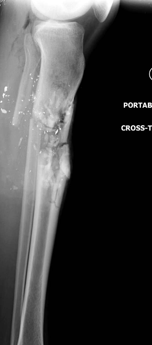 инфецирование раны и, не ожидая закрытия дефекта, можно проводит фиксацию даже внутрикостными фиксаторами. Затем можно продолжить процедуры по закрытию мягкотканннего дефекта.