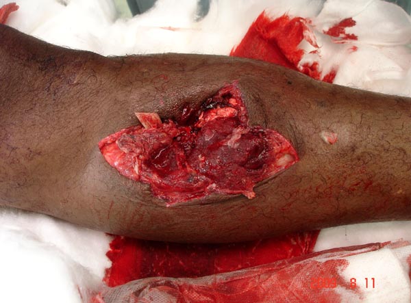 У моего б-го обширна ран по всей передней половине с/3 голени, в основном гранулирует, но область перелома по передне-медиалной поверхности открыта 2 на 2 см