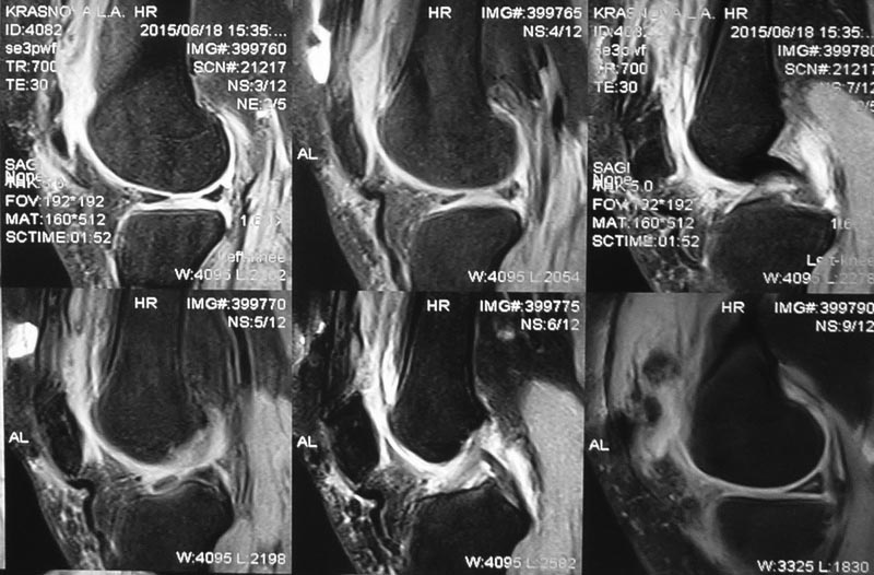 При действительно низком положении надколенника слева, убедиться в сохранности сухожилия квадрицепса. По МРТ его целостность сомнительна.