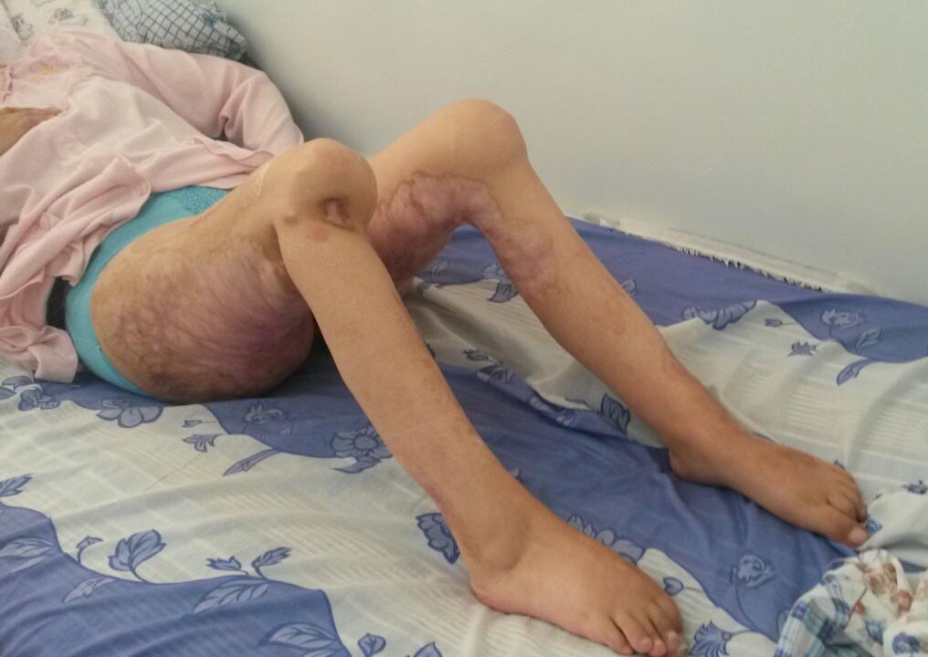 Если пациентка 4 года находится в таком положении, то нужно смотреть, что с тазобедренными, голеностопными суставами и стопами. Вероятно, в них тоже развились выраженные контрактуры. Может быть и в самом деле ампутация будет выходом? Или кресло-каталка. А промежность поражена рубцами? К вопросу о возможной беременности.