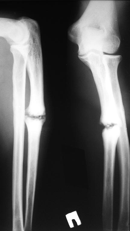 2. выполнить сравнительную рентгенографию лучезапястного сустава - оценить луче-локтевое взаимоотношение, по сравнению с здоровой конечностью