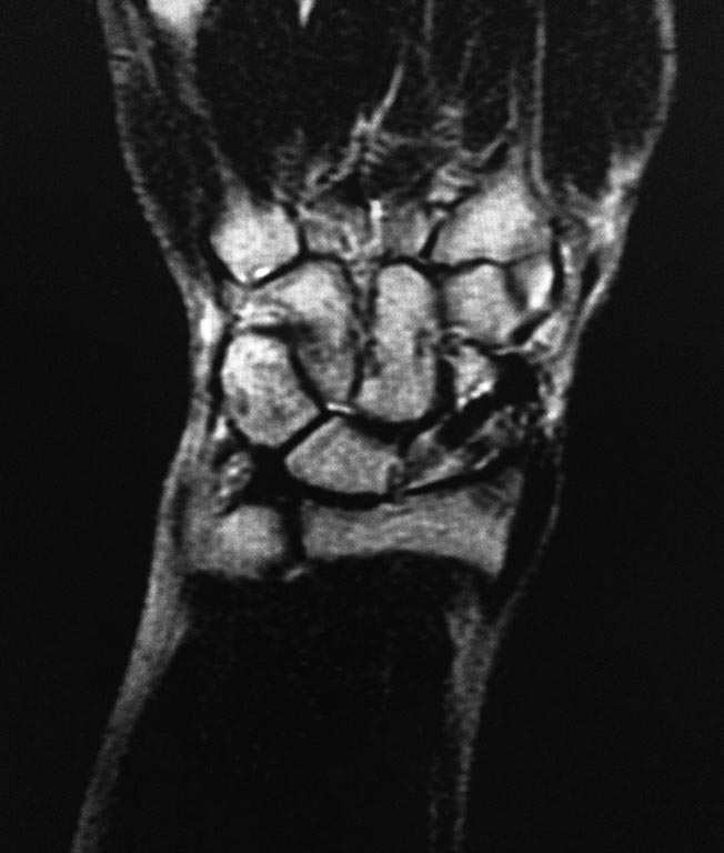 МОС винтом, в данное время в проекции ладьевидной кости болей нет, осевая нагрузка на 1ю пястную кость безболезненная, боли беспокоят при пальпации в проекции трехгранной кости и движениях в лучезапястном суставе(при пассивных и активных движениях возникают острые боли, так же в проекции трехгранной кости). На МРТ отмечаются проблемы в этой зоне. Со слов пациента, при периодических болях принимает таблетку найза, после чего все проходит.