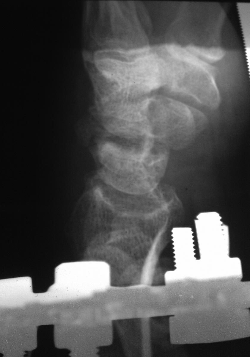 После проведенной оценки можно выполнить артроскопическую свободную аутопластику ладьевидной кости с транскутанной фиксацией спицами и последующей иммобилизацией кистевого сустава до 8 недель.