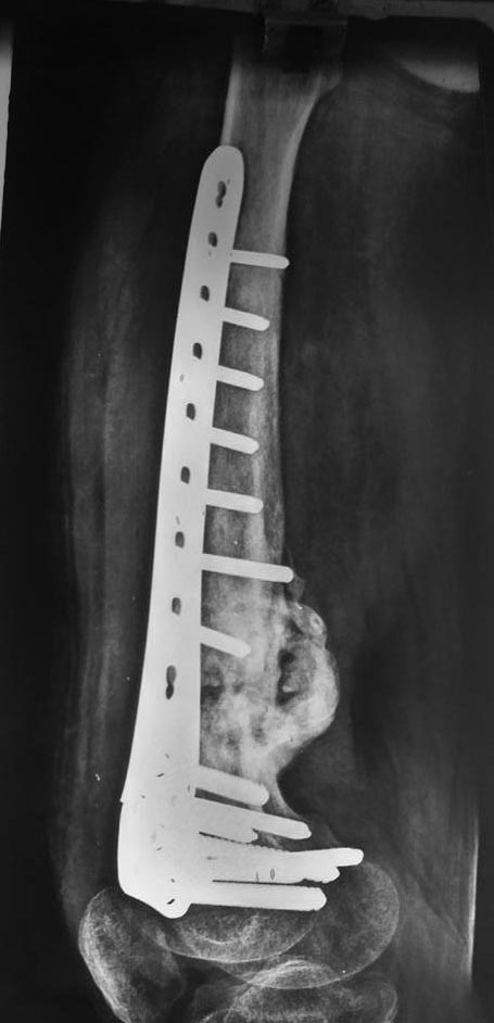 Мнение ИМХО- автору поста не полениться и вспомнить о том, что чем больше предоставлено информации, тем более обстоятельные и соответствующие случаю советы можно получить. Желательно фото, возможно стоит сделать КТ. "Кровь в норме" это еще не значит, что инфекции нет. Надо бы еще и СРБ определить. Иногда и пункция места несращения с бакпосевом не повредит. Важен объем движений в коленном суставе, наличие каких-либо сопутствующих заболеваний, в т.ч. эндокринных. Ну и это не считая, что желательно предоставлять две проекции рентгенснимков, лучше с захватом и коленного и тазобедренного суставов.