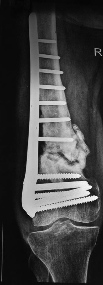 3-при сгибаемом колене ретроградный остеосинтез блокированным стержнем с антибактериальным покрытием