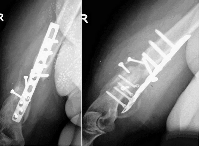 В странах, где популярен метод Илизарова, идея компрессии аппаратом приходит в первую очередь, но, с появлением менее агрессивных методов, наружные фиксаторы, особенно для плеча, теряют популярность!