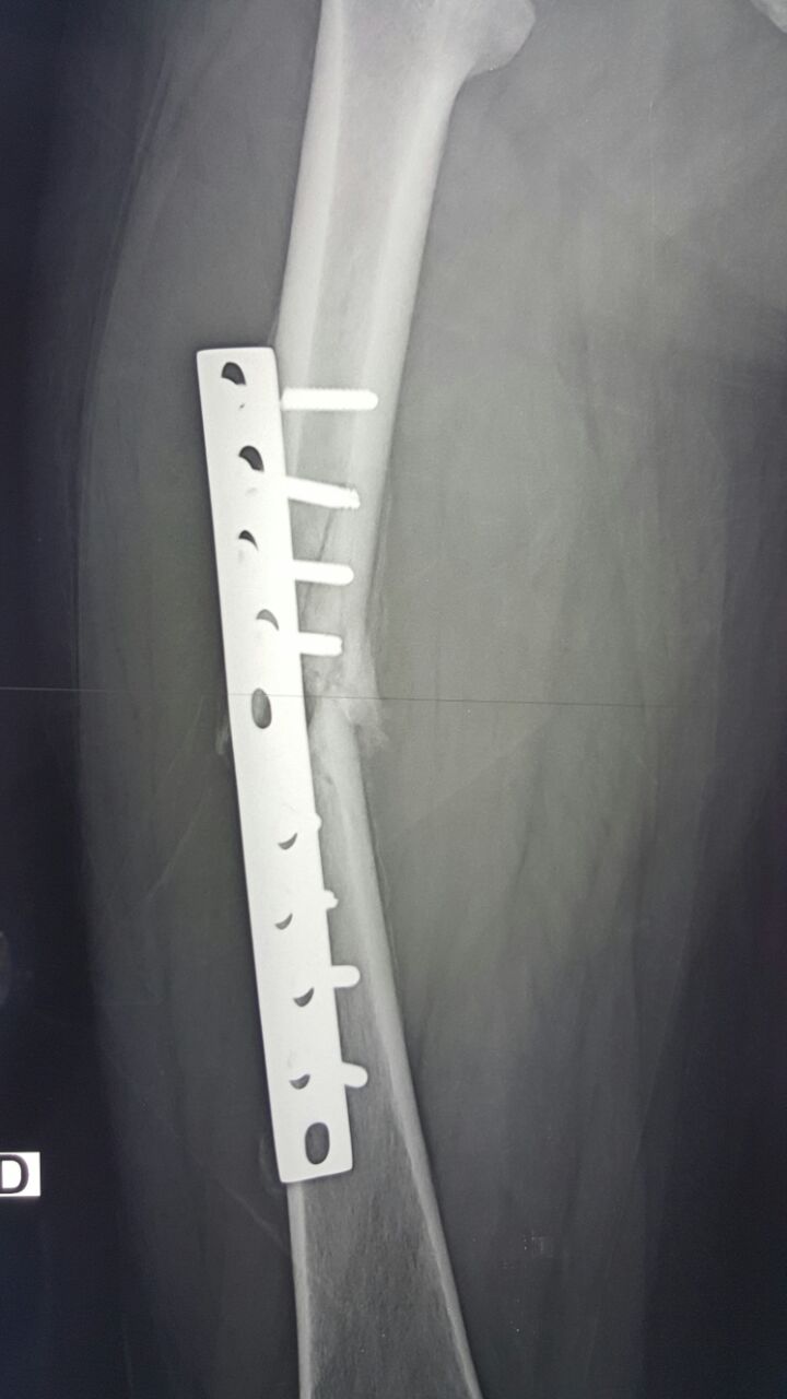 Конечно, и сейчас оптимально убрать пластину минимально инвазивно, и закрыто синтезировать блокируемым гвоздем с минимальным рассверливанием.