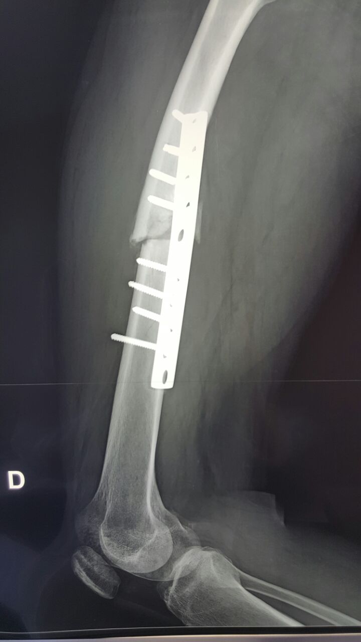 Есть, конечно, показания и для остеосинтеза пластиной переломов бедра, однако, данный случай, похоже, не из этой категории.