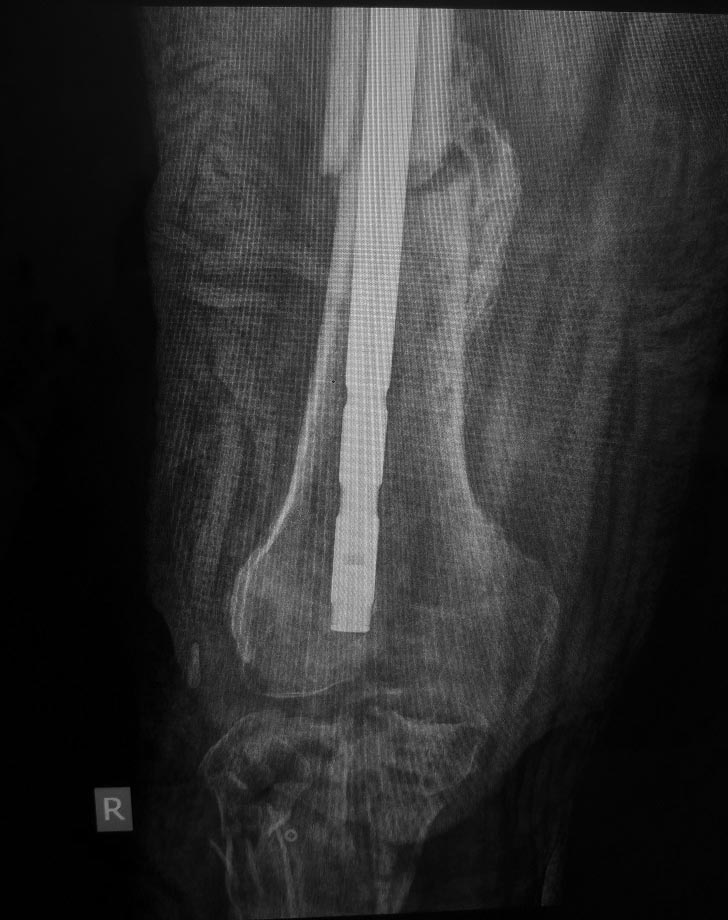 Вот такой случай. У пациента хронический остеомиелит проксимального отдела голени. Ложный сустав с/3-н/3 бедренной кости. Был спице-стержневой АВФ бедро-голень. Прям на штифте. 1. Резекция проксимального отдела голени 8 см приблизительно, собственной связки надколенника, самого надколенника?. Промывание; 2. Удаление штифта; 3. наложение АВФ спице-стрежневого на бедро и голень. Может еще есть какие мысли. Еще есть мысль со спейсером, но не знаю???? < | >