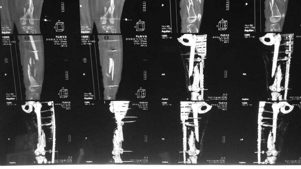 Демонтаж кда, вытяжение, санация, несколько дней затем стержень через колено, а общем погружной синтез