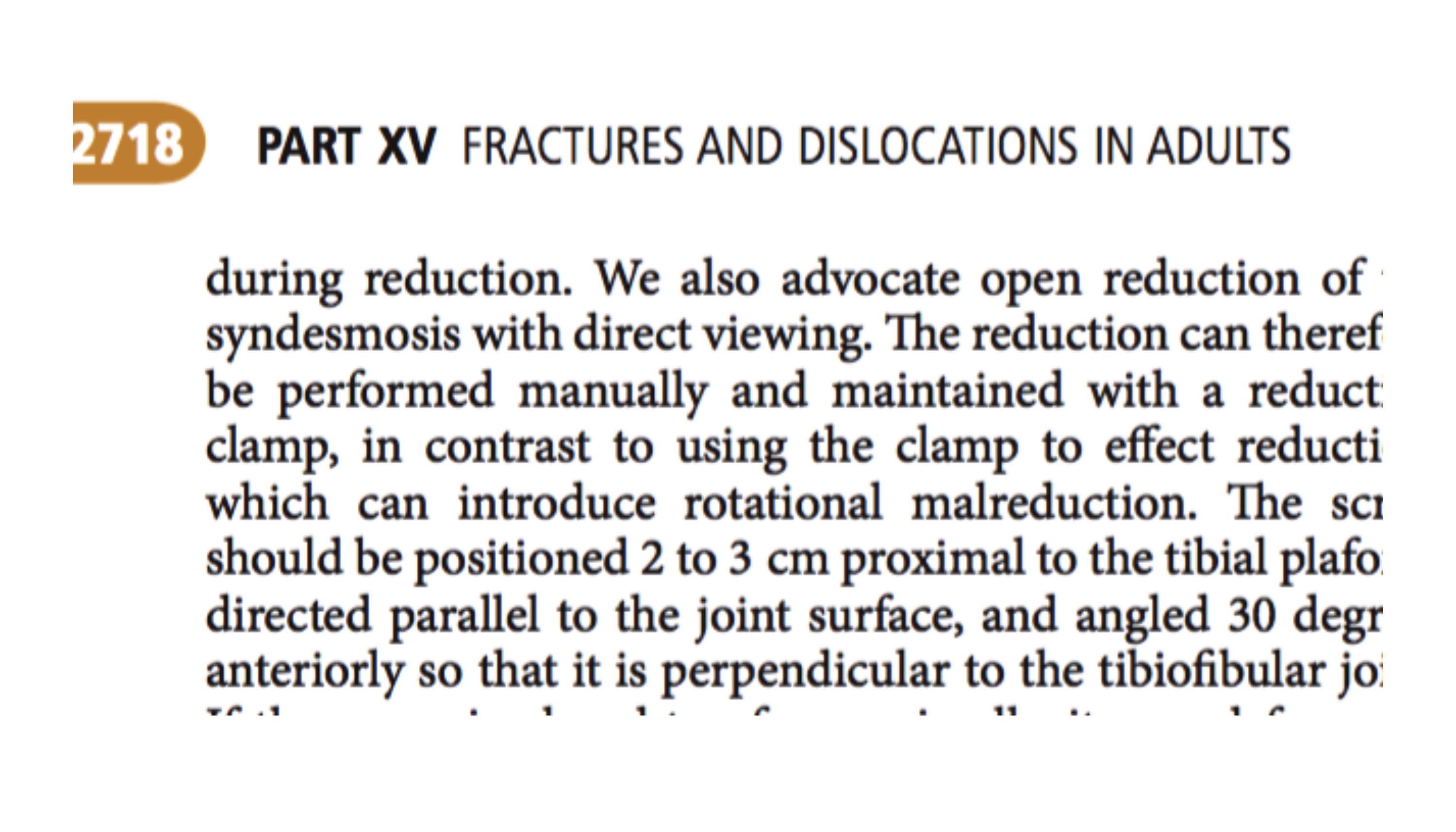 Во вложении рентгенограмма из руководства Кэмпбэлла, издания 2013 г. (стр. 2623), демонстрирующая технику фиксации синдесмоза через отверстие в пластине. Расстояние от суставной линии там явно не 2 см. тем более не 3.