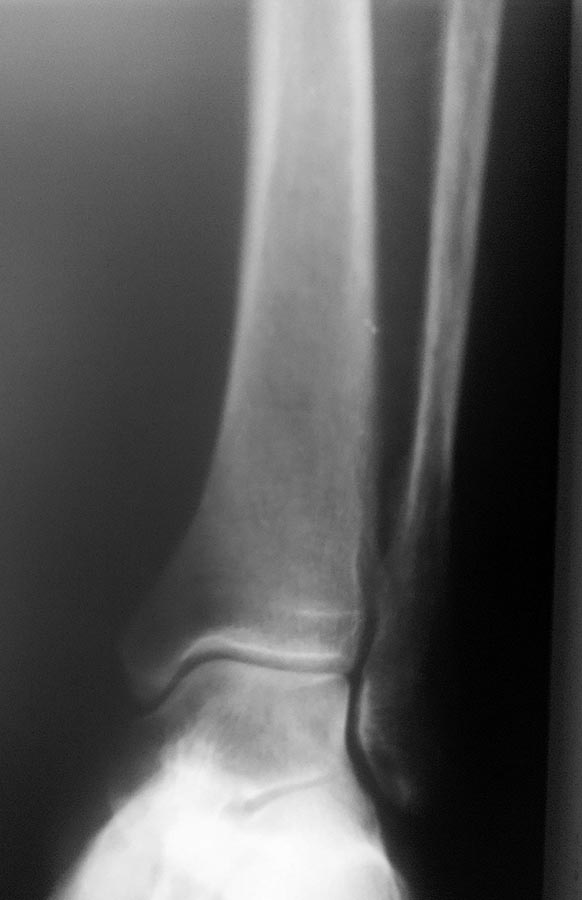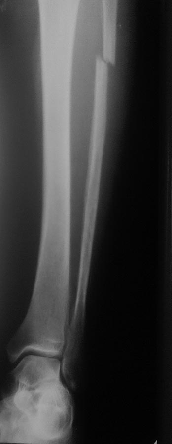 На боковой R-графии ГСС: задний край б/берцовой кости цел.