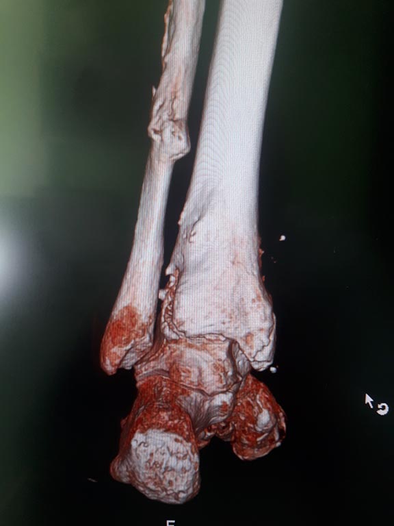 Пациент 52 года. Оперирован 17.06.16 по поводу 2-х лодыжечного перелома. Со слов, в профильном ЛПУ в 04.17 были удалены метконструкции. Картина на сегодняшний момент такова. < | >