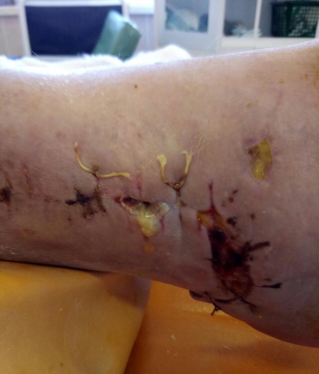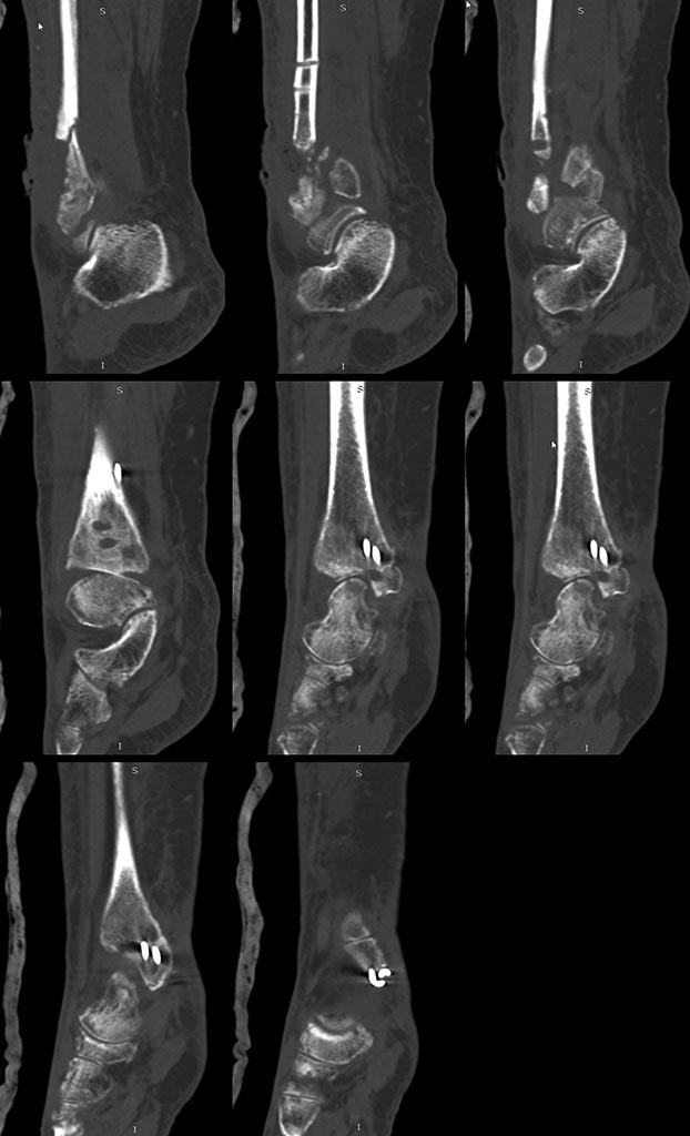ИМХО: Сделайте фистулографию, вовлечен ли голеностопный сустав (на предоставленном фото трудно определить)? Не исключено, что инфекция может располагаться также в большеберцовой кости (позиционные винты). По данным обследования повторная санация: