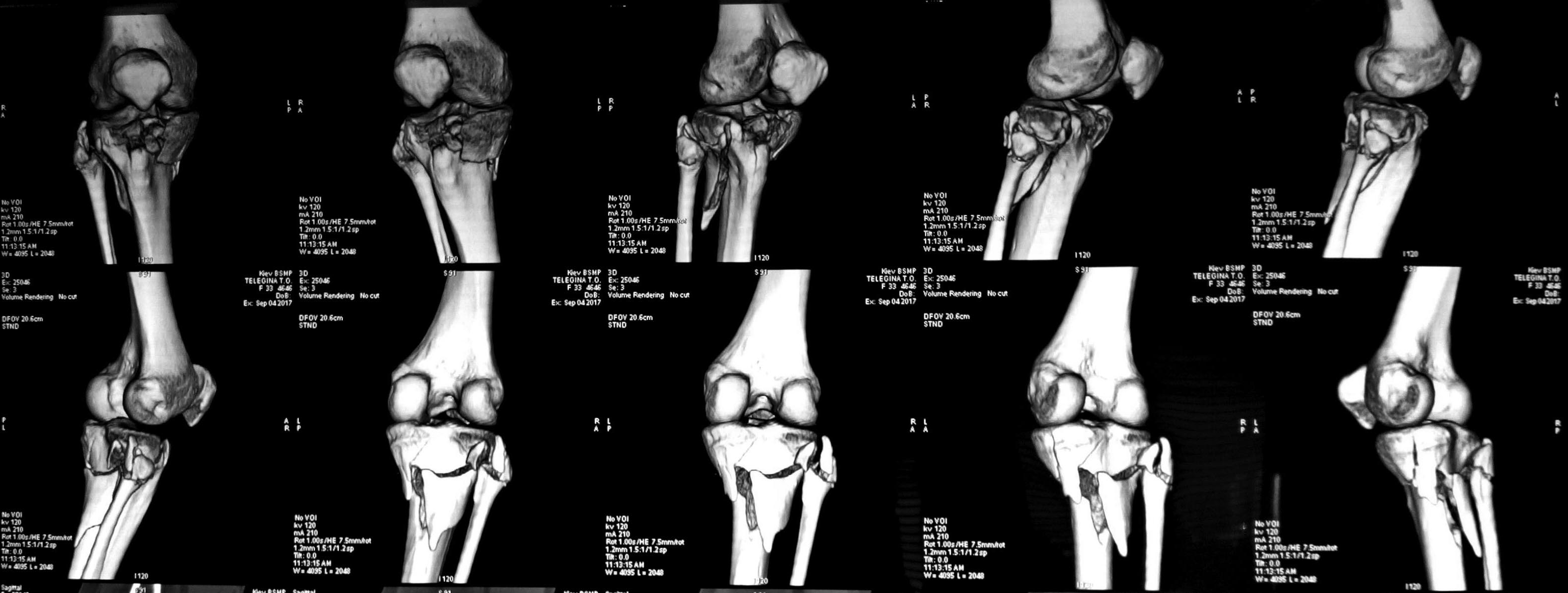 3х колонный перелом проксимального плато большеберцовой кости. Не очень понятно, сломан ли заднемедиальный край. Если сломан то 3 доступа-заднемедиальный, медиальный и латеральный. Если нет,то можно обойтись 2мя доступами. Латерально заходить надо не передне-латеральным доступом,а чисто латеральным. Доступ описан в иностранной литературе и некоторых современных переведенных на русский язык изданиях. Данный доступ как раз предназначен для остеосинтеза латерального и заднелатерального фрагмента плато,при нем выделяется как раз и общий малоберцовый нерв и ветвь,идущая через шейку малоберцовой кости,поэтому сразу можно и ревизию сделать. И из этого же доступа потом головку и зафиксировать