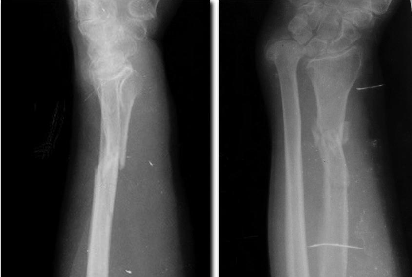 Добрый вечер, после сращения лучевой кости Вы предлагаете: "удаляйте головку локтевой кости с тенодезом", что Вы имеете в виду? Или лучше сделать резекцию локтевой кости в нижней трети и фиксировать её пластиной?