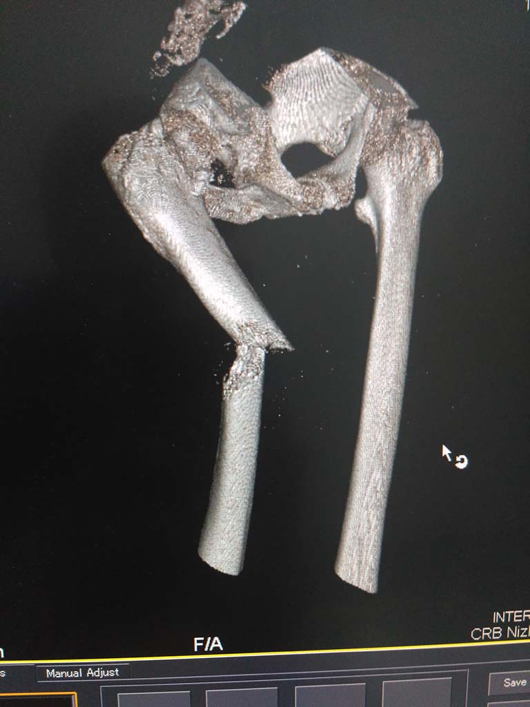 Никакого смысла показывать 3D картинку нет, обычные рентгенограммы для понимания, что за патологический перелом, гораздо информативнее.