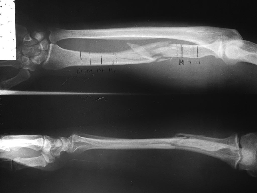 This patient has a fall of historia height whit outstretched hand and Wrist, the x rays shows a multifragmentary fracture of radial shaft, the Marín problema is that this patient havent money for a locking compresión plate, that is the óptimal Surgical treatment for him, so he buy a dcp plate, can anyone help to choose the best aproach and treatment with this material. Atatchment the x rays picture.