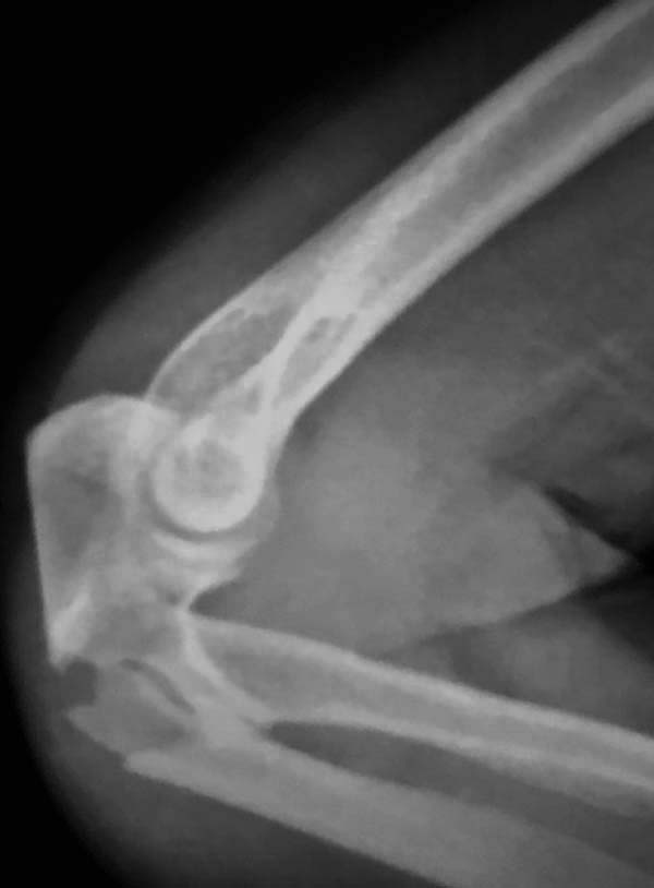 А так, здесь имеется многофрагментарный проксимальный перелом локтевого отростка с переломо-вывихом головки лучевой кости по классификации Mason III. Решение принимается на основании КТ срезов, потому что на боковом рентген снимке вроде отсутствует смещение, где сустав и контур Coronoid в одном блоке, а на прямом подозрение на смещение в Coronoid?