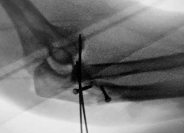 Конверсионные спицы на уровне проксимального отдела лучевой кости интересная идея, но на уровне перелома в области шейки трудно удержать головку. Предварительная репозиция локтевого отростка с временной установкой пластины, затем удаление экономит время. Доступ через локтевой отросток, где можно фиксировать или удалить головку с замещением, а потом установить пластину обратно на локтевой отросток!
