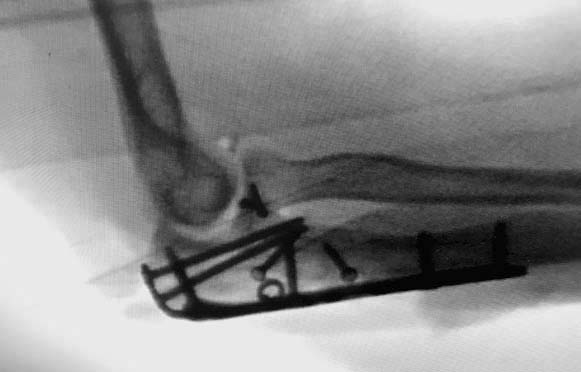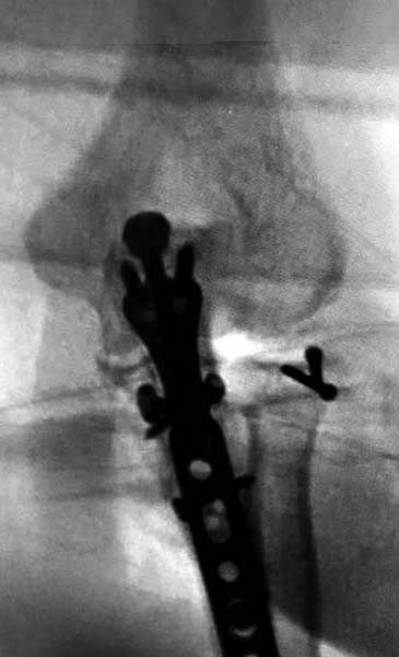 На локтевую кость - можно обойтись пластиной. На лучевую кость - стержневая фиксация т.е. обычные 2мм спицы, но с конверсивной геометрией.
