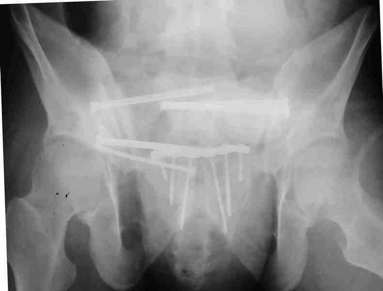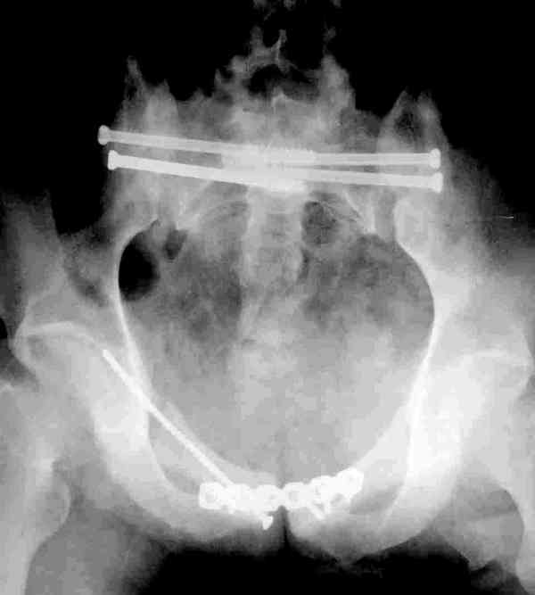 Коллеги, как и когда вы бы разрешили нагрузку в такой ситуации. Молодой парень, без соматики. Сейчас чуть больше 2-х нед после операции, швы сняты, мочится сам. Был тяжелый, после операции дней 10 пытался выполнить лежа поперечный шпагат (успешно, так и лежал большей частью, может быть из-за обширной гематомы промежности). Репозиция не идеальная, но фиксация довольно надежная, за 2 нед ничего не "разъехалось". Сейчас пришел в ум. Когда по-вашему можно дать нагрузку и на какую ногу или на обе? Или вообще подскажете программу реабилитации.PS Заранее извиняюсь за качество снимков, до не делали (body scan), если не видно - то - полные разрывы КПС с двух сторон. после КТ сломался. Неврологии вроде бы нет.