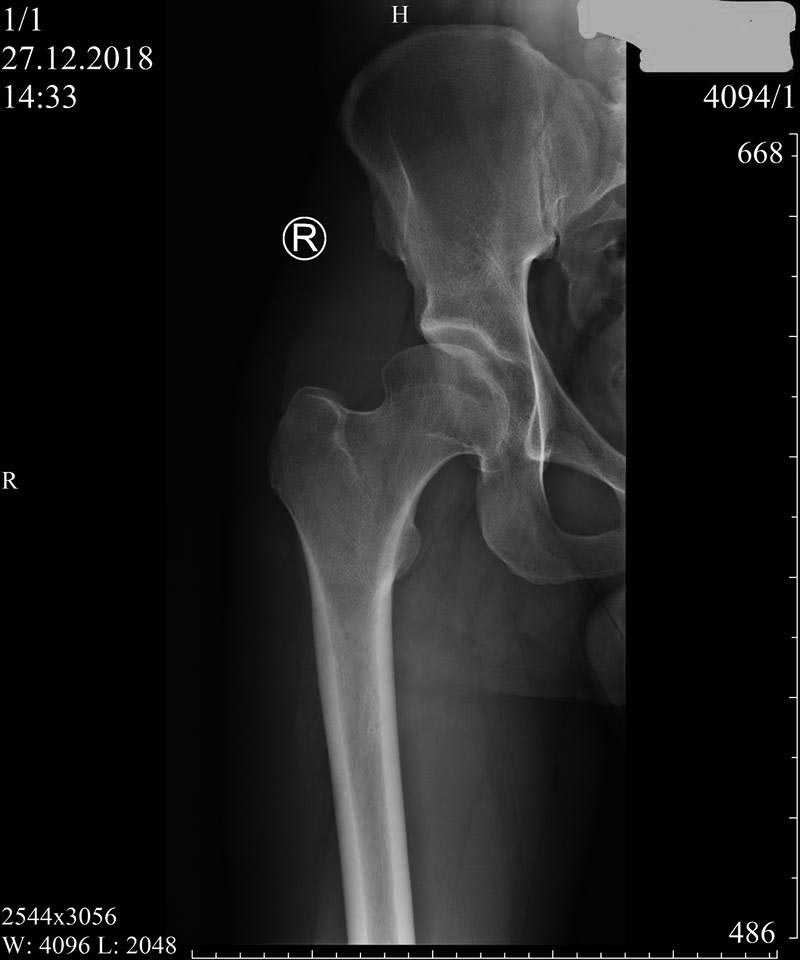 В данном случае имеется возможность сохранить сустав, рекомендуется остеотомия таза, которая увеличит нагружаемую поверхность и улучшит переднее покрытие. Тройная остеотомия имеет свои отрицательные стороны, например, из-за вовлечения задней колонны затягивается восстановление и бывают проблемы в акушерской практике. PAO (периацетабулярная остеотомия) таза позволяет исправить все деформации через один передний доступ.