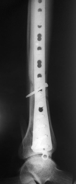 После репозиции вы провели компрессионный межфрагментарный винт, после чего необходимо было воспользоваться пластиной как нейтрализующей.