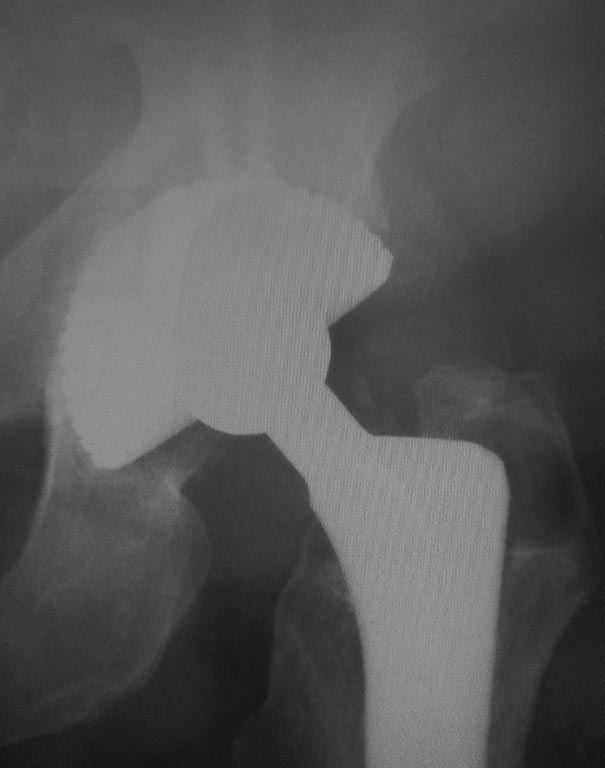 Хотелось все-таки уточнить, когда появились жалобы? Одно дело через 5 лет после операции и тогда мало вероятно стирание вкладыша и децентрация головки, даже при большом весе и значительной двигательной активности, и другое дело - более чем через 10 лет - тогда не исключается децентрация на фоне стирания полиэтилена