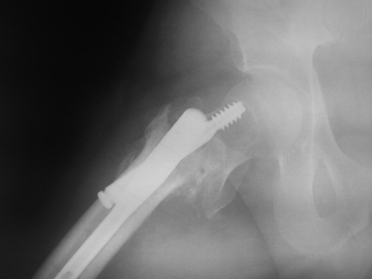 Уважаемые коллеги, посоветуйте, пожалста, как исправить ситуацию. Мужчина 45 лет 1,5 мес назад прооперирован в одной из клиник в средней полосе. Выполнен остеосинтез, видимо , Gamma 3.
